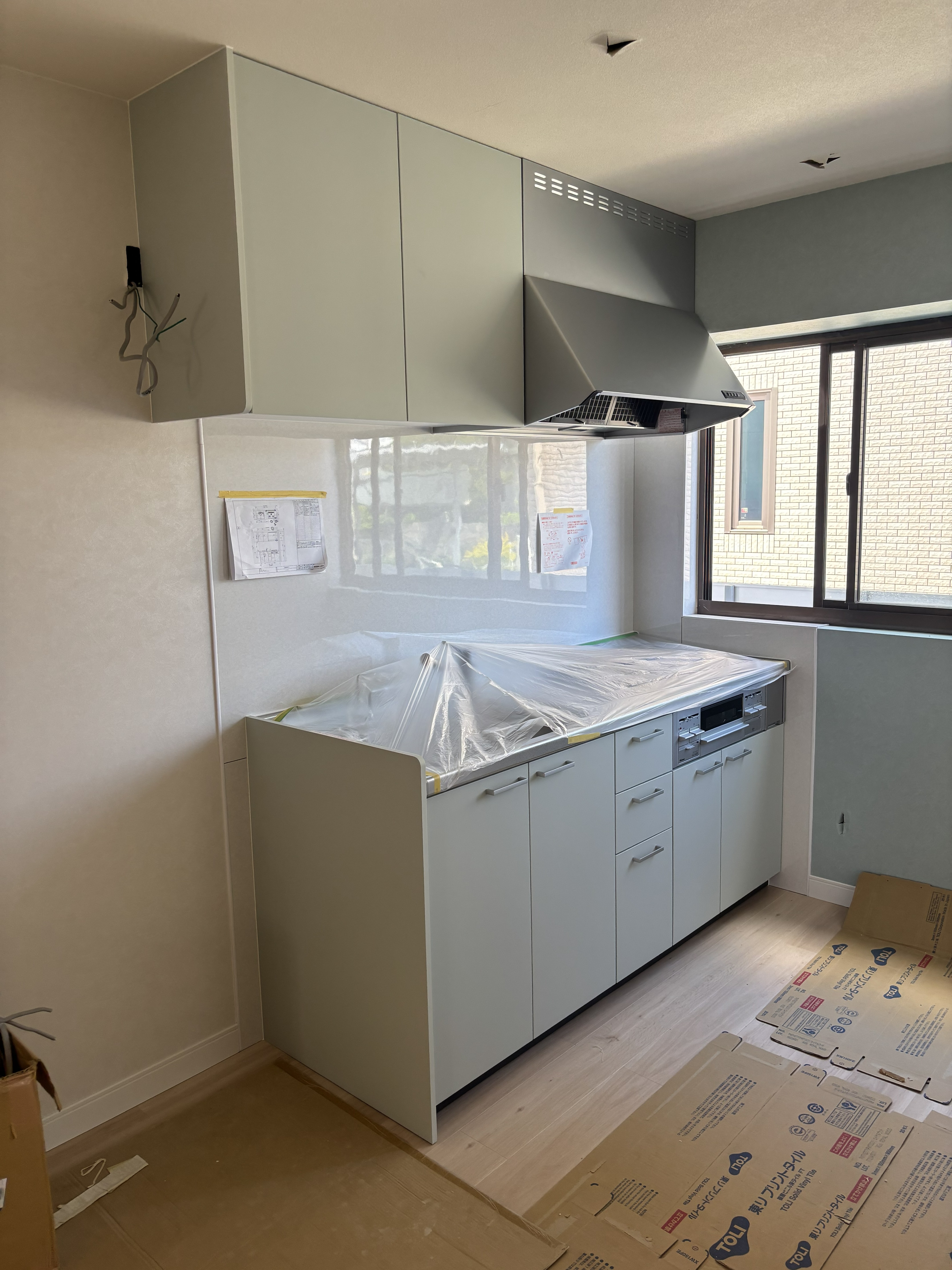 キッチンを設置すると、工事完了がもうすぐな気がしてお客様への引き渡しが待ち遠しいですね!